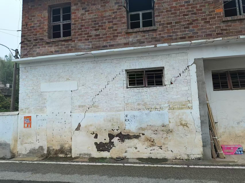 天基觀測結果與實勘完全對應,錳礦開采區(qū)域所處房屋發(fā)生大面積開裂,當地村民反映:房屋的裂縫開展時間主要發(fā)生在十多年前,近幾年裂縫已幾乎不再發(fā)展